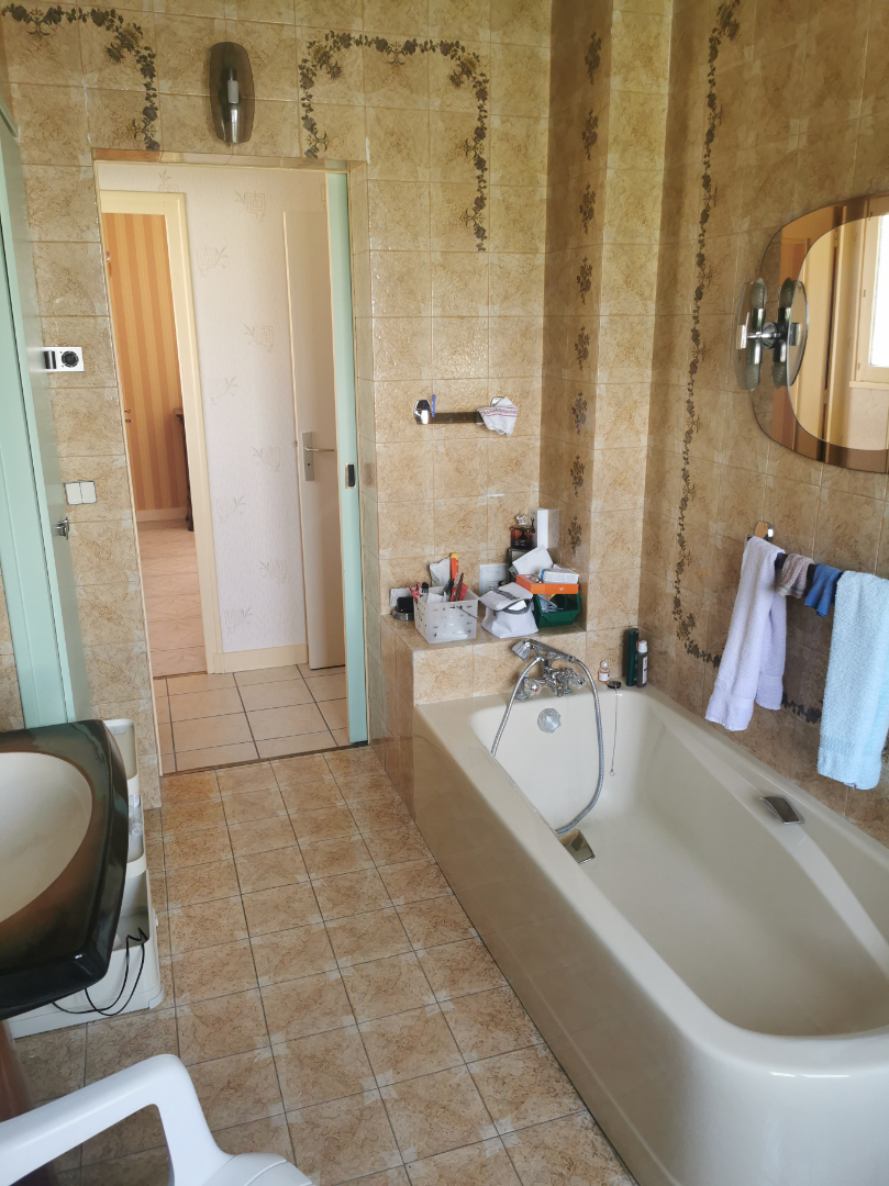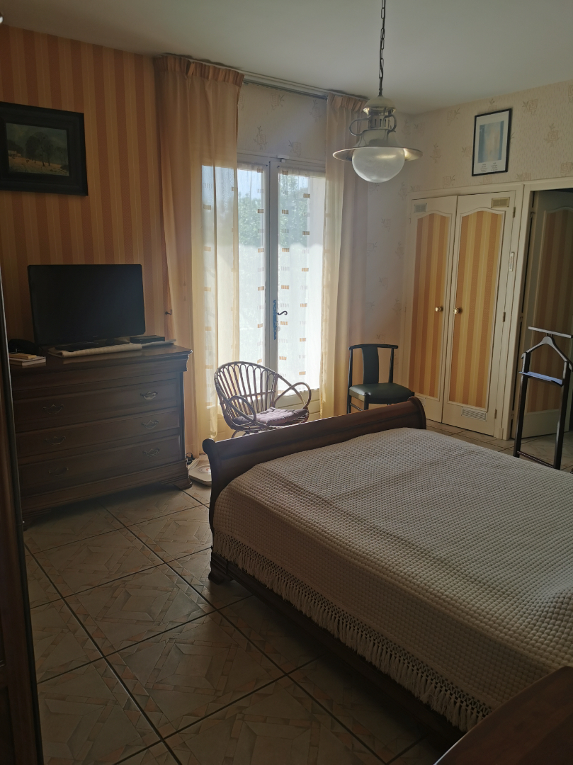 Entrée sur vestibule, cuisine aménagée et équipée avec cellier attenant , séjour salon d'environ 55m² avec cheminée, deux chambres séparées par une salle d' eau, une 3ème chambre avec salle d'eau privative et une salle de bains.