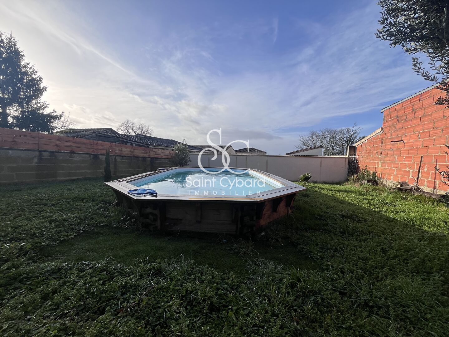 A l'extérieur, un grand jardin de plus de 800m² avec sa piscine semi enterrée.