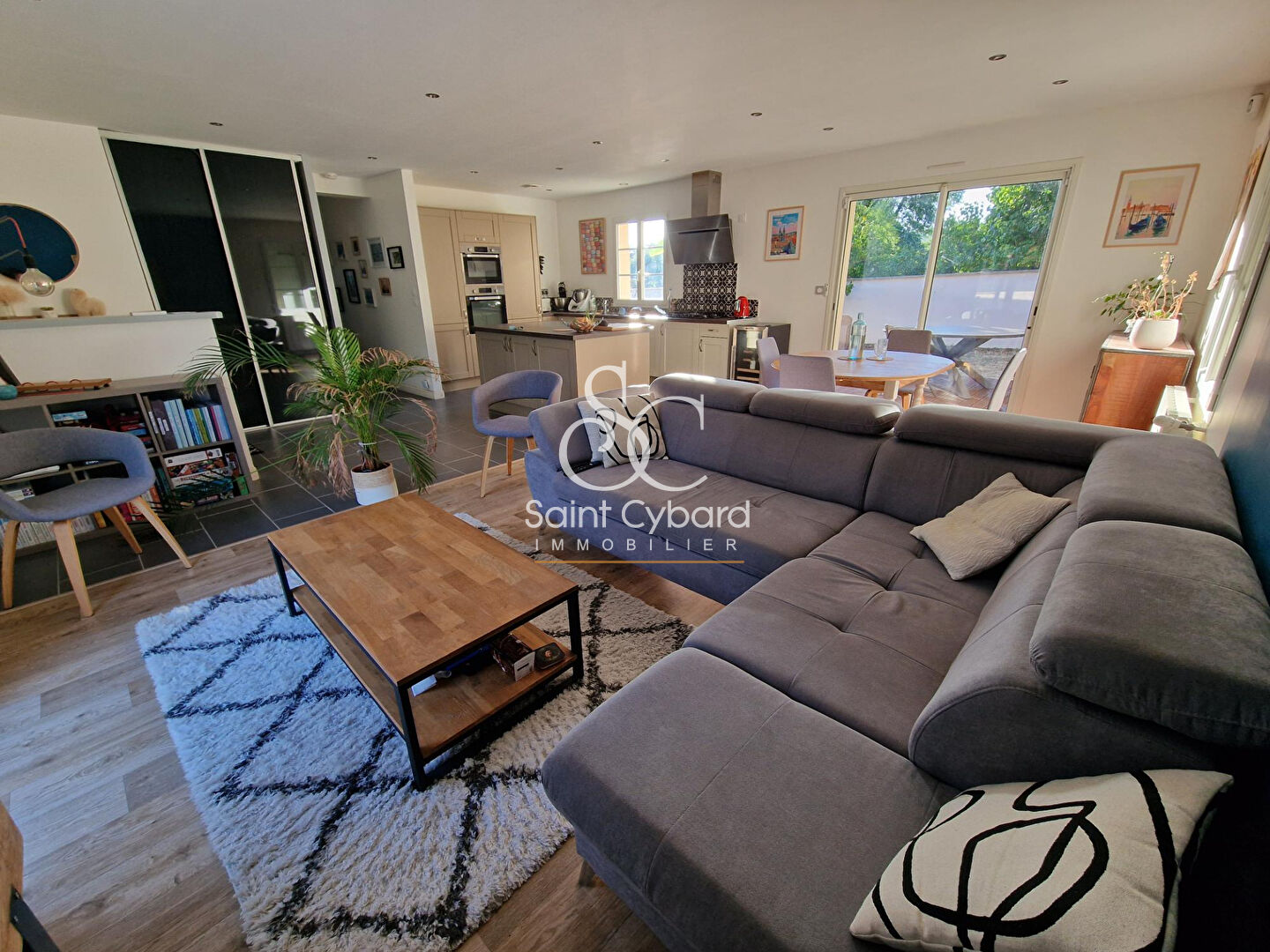 Dès l'entrée, vous arrivez dans une grande pièce de vie lumineuse ouverte sur une cuisine équipée et aménagée.