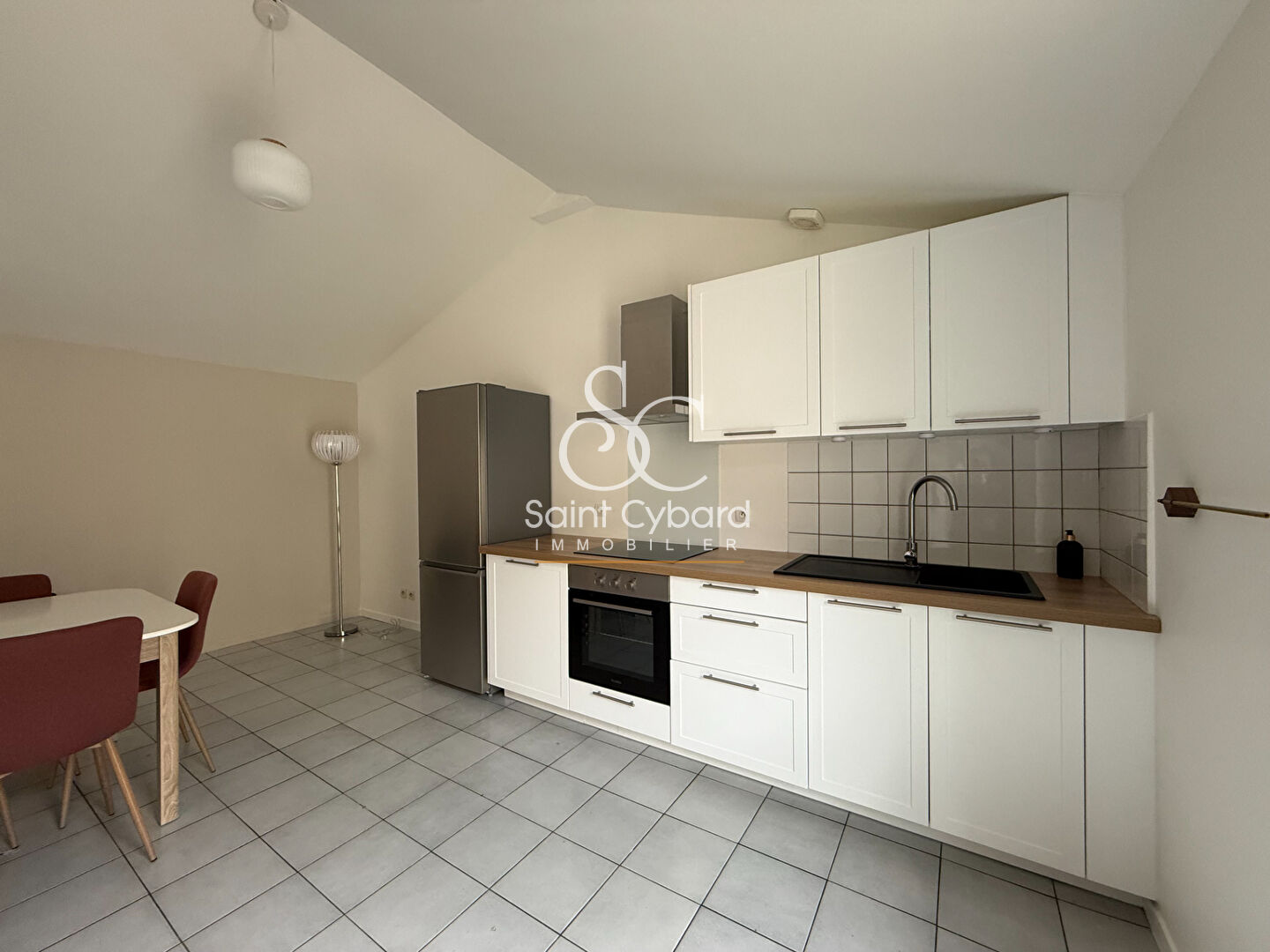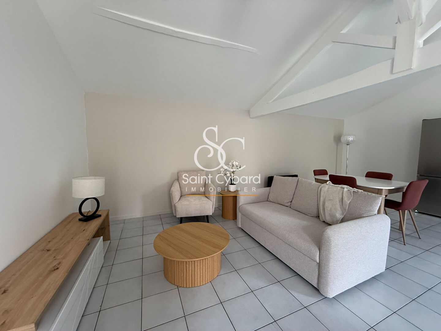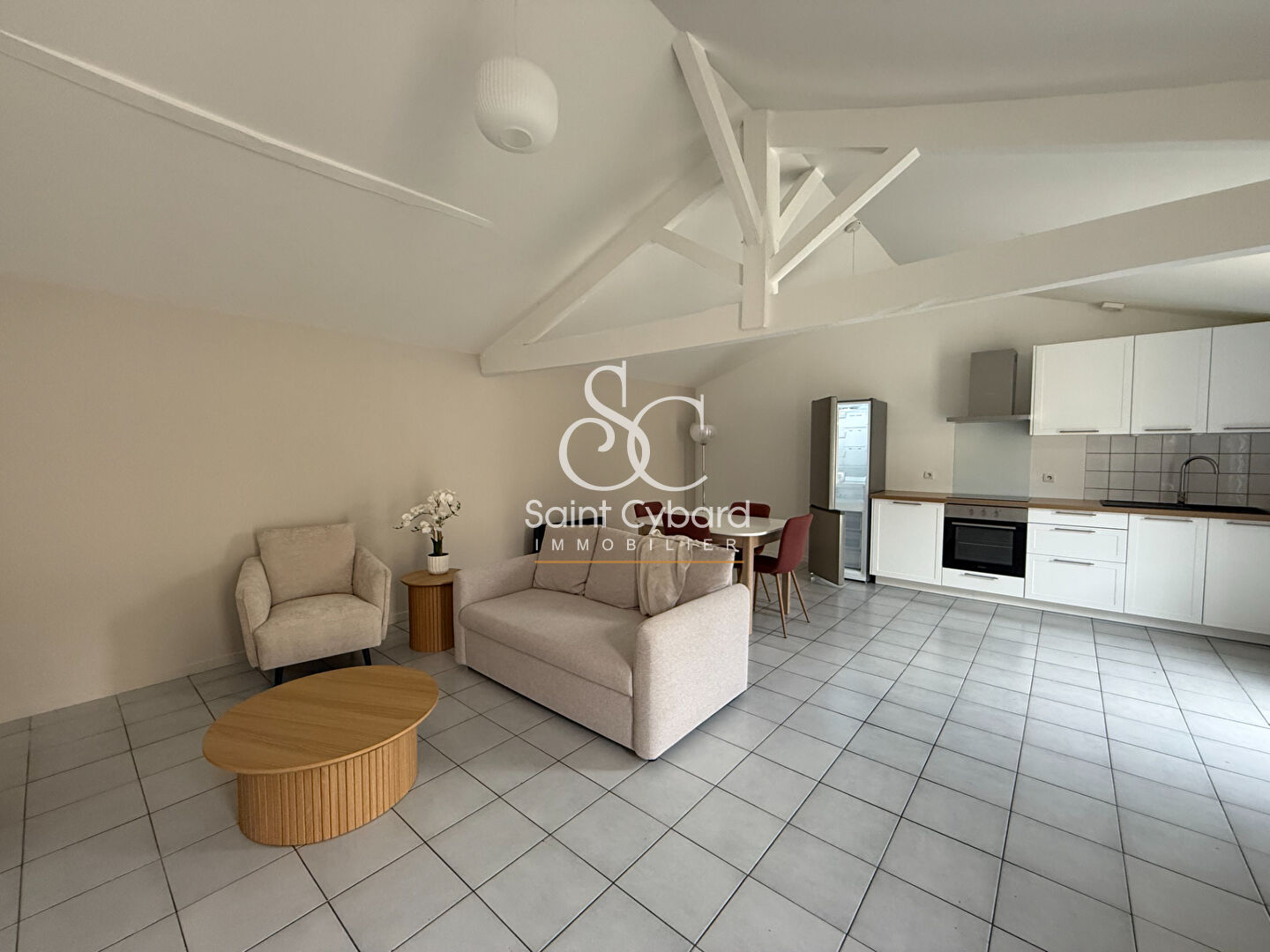A LOUER - T2 meublé composé d'une entrée sur pièce de vie salon / salle à manger, cuisine ouverte aménagée et équipée, une chambre avec salle d'eau et WC.